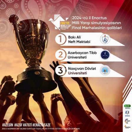 Enactus Dünya Kuboku 2024 Simulyasiyası”nın qalibi Bakı Ali Neft Məktəbi (BANM) olub. 21 universitet tələbələri arasında keçən yarışda BANM-in tələbələri Aysel Rəhimli, Çingiz Məmmədov və Oktay Əmrahov I yerə çıxıblar.