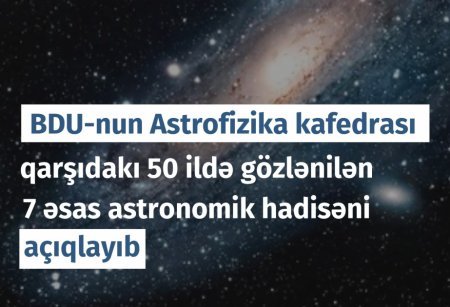 Bakı Dövlət Universitetinin (BDU) Astrofizika kafedrası qarşıdakı 50 ildə gözlənilən 7 əsas astronomik hadisəni açıqlayıb.
