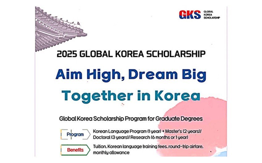 Koreya Respublikasının Azərbaycandakı səfirliyi Qlobal Koreya Təqaüd Proqramına (Global Korea Scholarship – GKS) 2025-ci il üzrə müraciət prosesinin başlandığını elan edir.