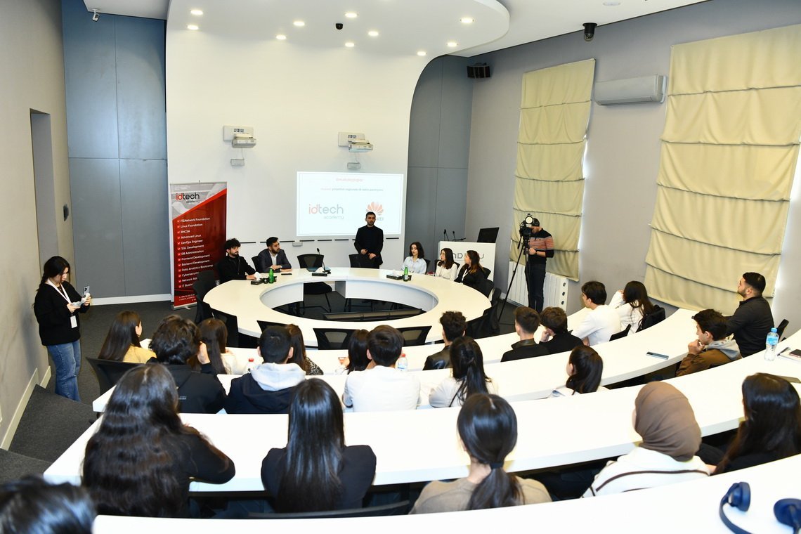 AzEdu.az xəbər verir ki, tədbirdə “IDTECH” şirkətinin nümayəndələri Elşən Fərzəliyev və Sənan Səfərəliyev çıxış edərək şirkətin fəaliyyəti, tədris proqramları və gənclərə təqdim olunan təhsil imkanları haqqında ətraflı məlumat veriblər, sonra İT biliklərinin təkmilləşdirlimsəi ilə bağlı geniş təqdimatla çıxış ediblər.