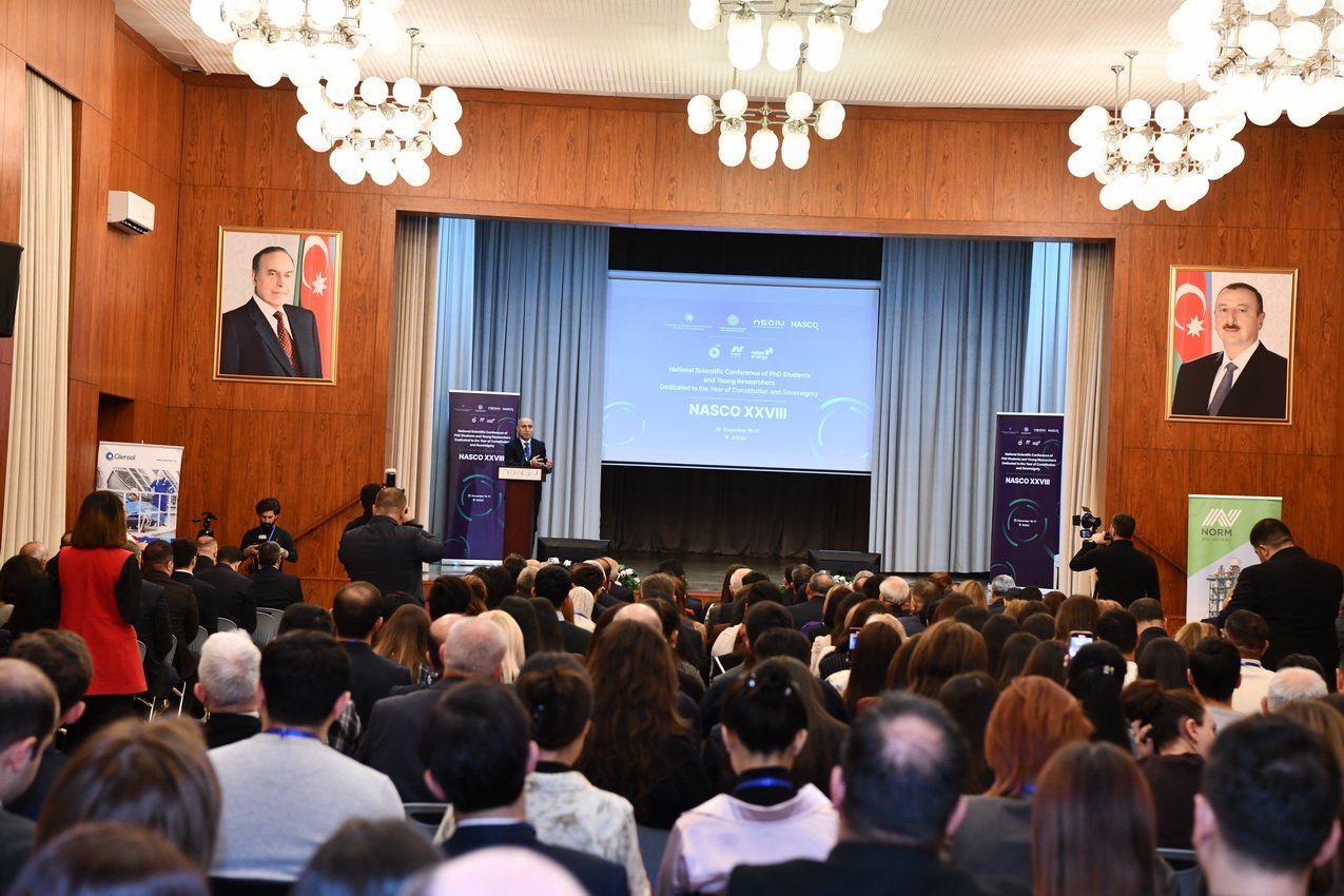 Salamlama nitqi ilə çıxış edən ADNSU-nun rektoru Rüfət Əzizov konfransın ölkənin elmi həyatında uzun illərdir mühüm platforma rolunu oynadığını bildirib. NASCO XXVIII-də dayanıqlı inkişaf məqsədlərinin əhatə olunduğunu deyən rektor statistik göstəricilərə əsaslanaraq qeyd edib ki, NASCO XXVIII 609 qəbul olunmuş iştirakçı ilə ümumi göstəricilər üzrə liderdir. Eyni zamanda, qəbul edilmiş məqalələrin sayı 600-ü ötüb.