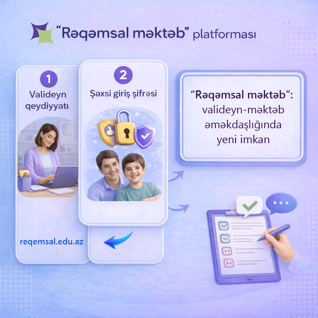 Qeyd edək ki, təhsil prosesində şəffaflığın və valideyn–məktəb əməkdaşlığının gücləndirilməsi məqsədilə yaradılmış “Rəqəmsal məktəb” platforması valideynlərə övladlarının təhsil göstəricilərini izləmək, məktəb həyatı ilə bağlı məlumatları vaxtında əldə etmək və rəy bildirmək imkanı yaradır.