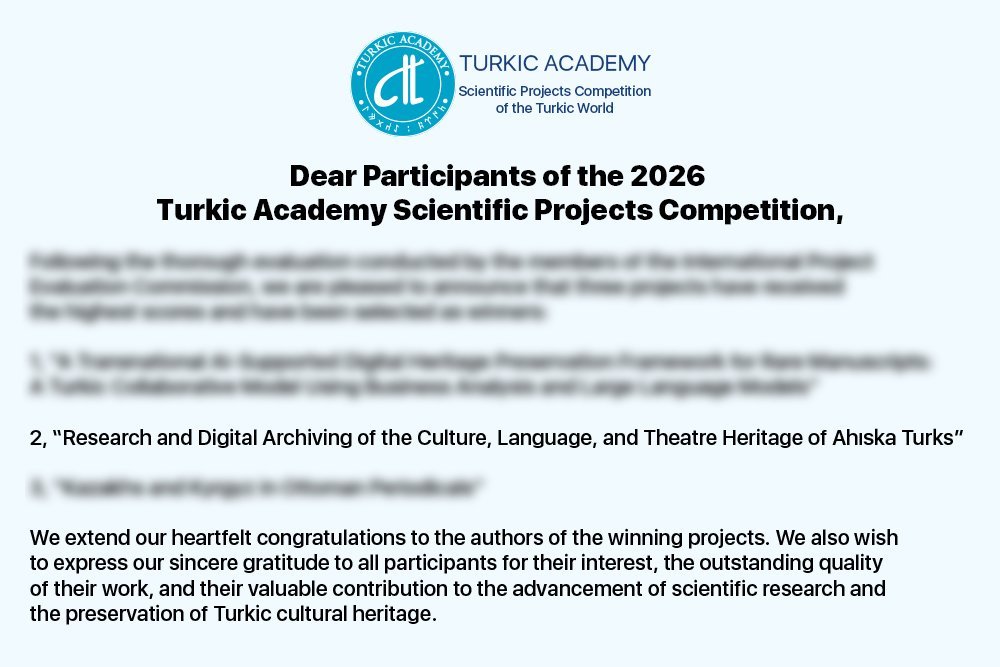 Azərbaycan Universitetinin Tərcümə və filologiya kafedrasının əməkdaşlarının “Ahıska türklərinin mədəni, dil və teatr irsinin tədqiqi və rəqəmsal arxivləşdirilməsi” (Research and Digital Archiving of the Culture, Language, and Theatre Heritage of Ahıska Turks) layihəsi Türk Akademiyası tərəfindən 2026-cı il üçün elan edilmiş “Elmi layihələr müsabiqəsi”nin qalibi olub.