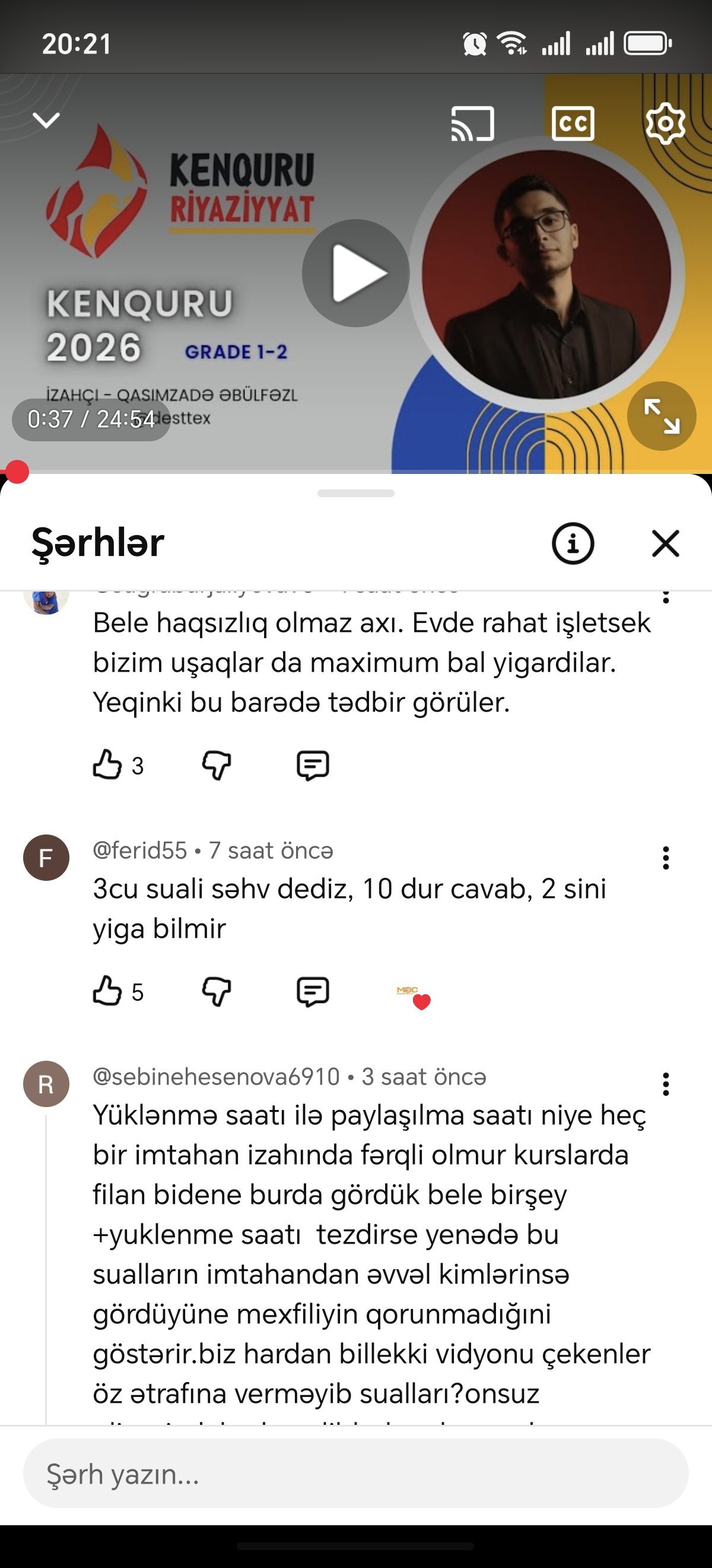 Tehsil.media qeyd edir ki, əldə edilən məlumatlara görə, imtahan sualları hələ sınaq başlanmazdan əvvəl müxtəlif kurslarda əldən-ələ gəzir. Bu da bəzi şagirdlərin imtahana öncədən hazırlanmasına şərait yaradır ki, nəticədə vəziyyət daha da gərginləşir. Xüsusilə "YouTube" platformasında yayılan bəzi videolar imtahandan 20 saat öncə sualların izahının verildiyini açıq şəkildə nümayiş etdirir.