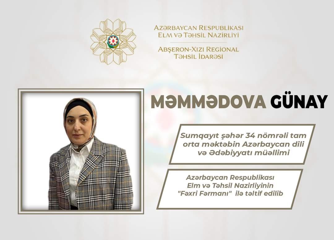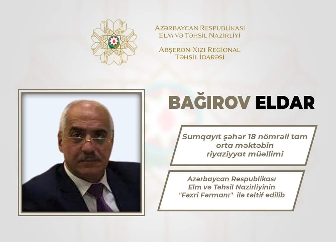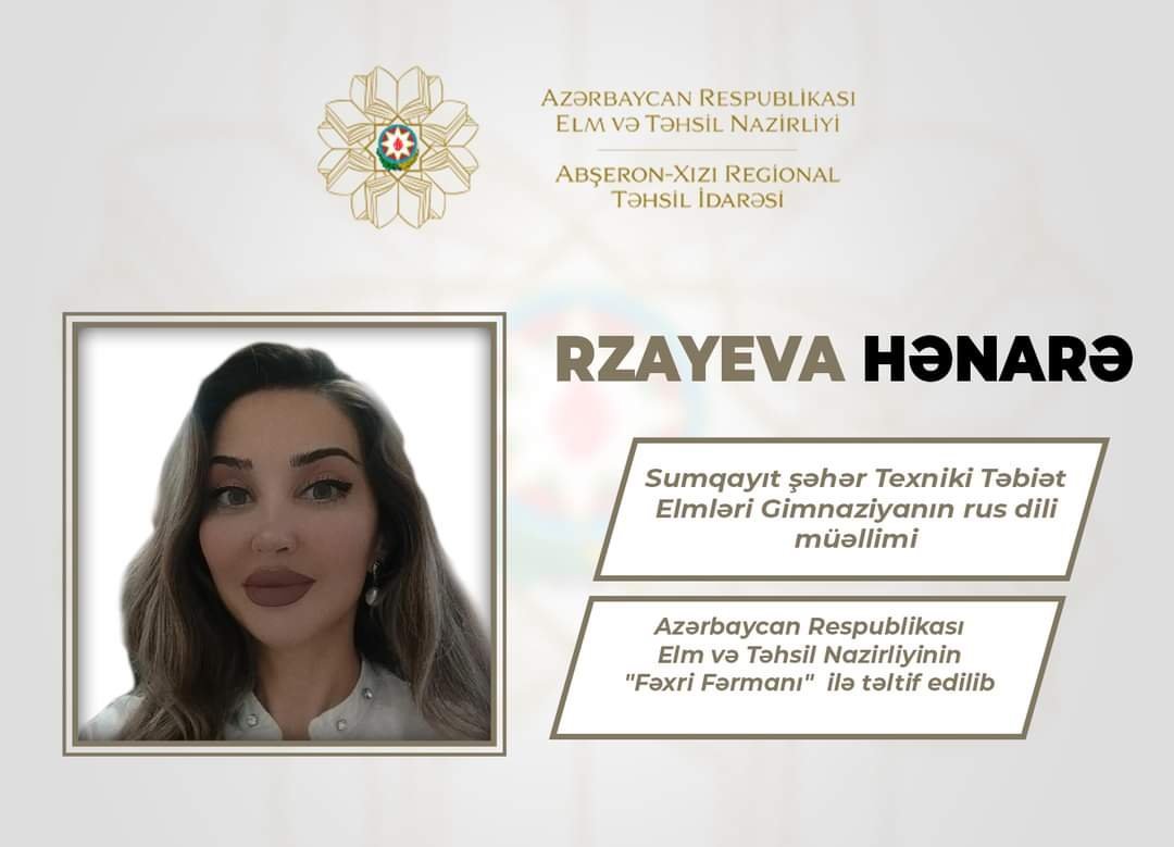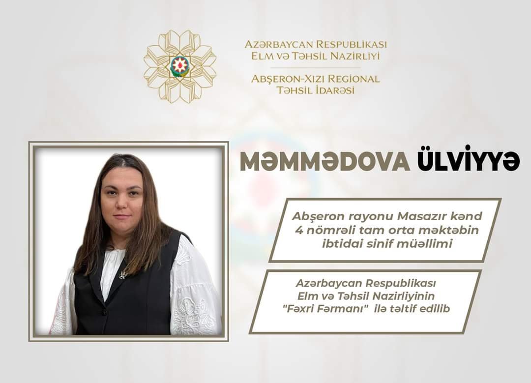 Azərbaycan Respublikası elm və təhsil naziri cənab Emin Əmrullayevin müvafiq əmri ilə Abşeron-Xızı Regional Təhsil İdarəsinin tabeliyində fəaliyyət göstərən ümumi təhsil müəssisələrində çalışan bir sıra təhsil işçisi təhsilin inkişafındakı xidmətlərinə, gənc nəslin təlim-tərbiyəsi sahəsində yüksək nailiyyətlər əldə etdiklərinə görə və 5 oktyabr- Beynəlxalq Müəllimlər Günü münasibətilə "Azərbaycan Respublikası Elm və Təhsil Nazirliyinin Fəxri Fərmanı" ilə təltif ediliblər.Bu barədə "