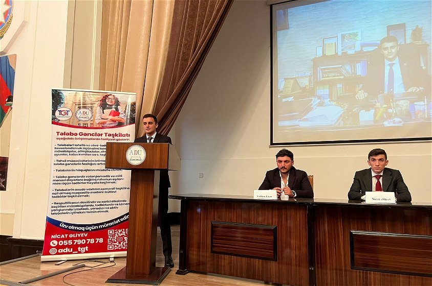 Azərbaycan Dillər Universitetində (ADU) ADU Tələbə Gənclər Təşkilatı (TGT) tərəfindən "Bir Günlük Xəlifə" layihəsi ilə bağlı xəlifə-rektor olan məzunlarımızla tələbələr arasında görüş keçirilib.