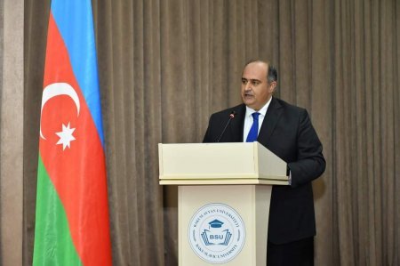 BSU-nun rektoru Anar Nağıyev möhtəşəm Zəfər Günü münasibətilə tədbir iştirakçılarını təbrik edib. Rektor bu şanlı qələbənin Azərbaycanın ərazi bütövlüyünü təmin edən Müzəffər Ali Baş Komandan İlham Əliyev və onun ətrafında “Dəmir Yumruq” kimi birləşmiş rəşadətli Azərbaycan Ordusu və xalqın birliyi nəticəsində əldə edildiyini diqqətə çatdırıb. Müasir Azərbaycan tarixinin keçdiyi yola nəzər salan Anar Nağıyev ölkəmizi düşmənin təhdidlərindən Azərbaycan xalqının dövlətçiliyinə və öz ənənələrinə olan sadiqliyin, öz rəhbəri ətrafında sıx birləşməsinin xilas etdiyini vurğulayıb. Rektor bugünkü tarixi zəfərin Müasir Azərbaycan dövlətinin banisi olan Ulu öndər Heydər Əliyevin qoyduğu sağlam təməllər sayəsində qazanıldığını deyib. O, Ümummilli liderin fəaliyyəti dövründə ölkəmizin inkişafı üçün yaradılmış əsasların Prezident İlham Əliyevin hakimiyyəti dövründə uğurla davam etdirldiyini vurğulayıb. Rektor bildirib ki, Azərbaycanın güclü iqtisadi potensialı, Milli Ordu quruculuğu və Azərbaycanda baş verən digər inkişaf prosesləri ölkəmizin ərazi bütövlüyünün bərpa olunması ilə yekunlaşdı. Anar Nağıyev Azərbaycanda gəncliyin milli vətənpərvərlik ruhu əsasında yetişdirilməsinin öz əksini 44 günlük Vətən müharibəsində tapdığını deyib. “Biz xoşbəxt insanlarıq, ona görə ki, Azərbaycan bayrağı müqəddəs Şuşa şəhərində, Kəlbəcərdə otuz illik yaramız olan Xocalıda dağlanır”- deyə rektor qeyd edib. O,15 oktyabr 2023-cü il tarixində Prezident İlham Əliyevin qədim şəhərimiz olan Xankəndi şəhərindən xalqa müraciətini eşitdiyimizi bildirib. Rektor bu müraciətin böyük bir tarixin yeni bir mərhələsinin- daha uğurlu, daha böyük zəfərlərlə aparan gələcəyin başlanğıcının işarəsi olduğunu diqqətə çatdırıb. “Ulu öndər Heydər Əliyevin qeyd elədiyi və bütün Azərbaycan xalqının həyat devizinə çevrilən, ümumi daxili kimliyimizi və mənliyimizi göstərən “Mən fəxr edirəm ki, azərbaycanlıyam” ifadəsini Prezident İlham Əliyevin üç il bundan öncə dediyi “Əziz Şuşa, sən azadsan! Əziz Şuşa, biz qayıtmışıq! Əziz Şuşa, biz səni dirçəldəcəyik!” ifadələri ilə öz tamlığını təmin elədi”- deyə Anar Nağıyev bildirib.