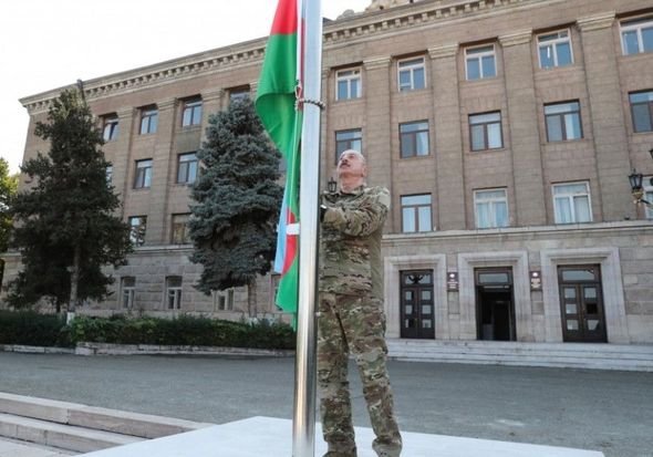 Bütün bunların nəticəsi olaraq, Azərbaycan dövlət başçısı öz vədinə sadiq olduğunu növbəti dəfə ortaya qoydu. Oktyabrın 15-də Xocalı, Xankəndi, Xocavənd, Ağdərə şəhərlərində, Əsgəran qəsəbəsində üçrəngli, ay-ulduzlu bayrağımızı dalğalandıran dövlət başçısı İlham Əliyev Azərbaycan xalqını təbrik etdi. O, prezidentliyinin 20 ili ərzində qarşısına qoyduğu bütün hədəflərə çatdığını dilə gətirdi: “Düz 20 il bundan əvvəl Azərbaycan xalqı mənə böyük etimad göstərərək prezident seçkilərində Prezident vəzifəsinə seçmişdir. O vaxt doğma xalqıma müraciət edərək söz vermişdim ki, Azərbaycan xalqının və Azərbaycan dövlətinin milli maraqlarını müdafiə edəcəyəm, Azərbaycanın ərazi bütövlüyünü qoruyacağam. Konstitusiyaya və “Qurani-Kərim”ə əl basaraq and içmişdim. Şadam ki, son 20 il ərzində verdiyim bütün vədlər, qarşıma qoyduğum bütün vəzifələr icra edildi. ...Biz bu gün buradayıq, Xankəndidəyik, Xankəndinin mərkəzindəyik, Azərbaycan Gerbi, Azərbaycan Bayrağı altında. Bu, böyük xoşbəxtlikdir və tarixi hadisədir. İndi bu tarix haqqında danışmaq mənim üçün bəlkə o qədər də düzgün deyil. Çünki bu tarixi biz yaşamışıq, bu tarixi biz yaratmışıq. Azərbaycan xalqı elə bir Qələbə qazanıb ki, həm dillər əzbəri olub, həm də bu Qələbə əbədi bizimlə olacaq. Bu Qələbə bizim tariximizdə əbədi olacaq. Bizdən sonra gələn nəsillər bu Qələbə ilə əbədi və haqlı olaraq fəxr edəcəklər”.