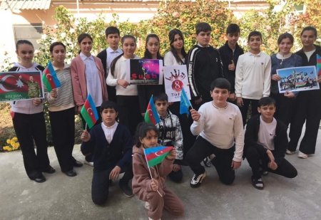 tehsil.media xəbər verir ki, dərs zamanı məktəblilərə Azərbaycanın müasir tarixinə qızıl hərflərlə həkk olunmuş Zəfər Günü barədə ətraflı məlumat verilib. Azərbaycan Prezidenti, Müzəffər Ali Baş Komandan İlham Əliyevin qətiyyətli rəhbərliyi ilə rəşadətli Silahlı Qüvvələrimizin Qarabağı erməni işğalçılarından azad etdiyi, şanlı Azərbaycan Dövlət Bayrağının Qarabağın hər kəndində və şəhərində ucaldıldığı, ölkəmizin suverenliyinin və ərazi bütövlüyünün tam şəkildə bərpa olunduğu diqqətə çatdırılıb.