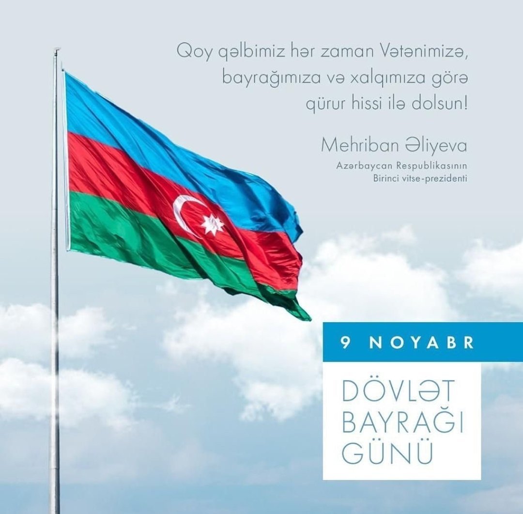 Azərbaycan Respublikasının Birinci vitse-prezidenti Mehriban Əliyeva rəsmi instaqram hesabında 9 Noyabr Dövlət Bayrağı Günü ilə bağlı paylaşım edib.