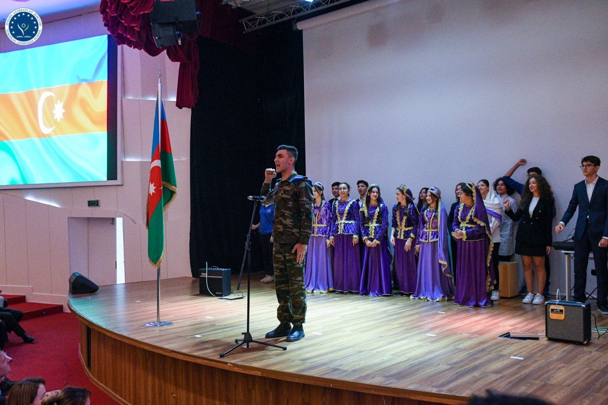 Daha sonra şagirdlər Zəfər Gününə həsr edilmiş vətənpərvərlik mövzusunda şeir, rəqs və səhnəciklər nümayiş etdiriblər. Direktor F. Bankini məktəbin əməkdaşları olan və I Qarabağ müharibəsində iştirak etmiş Əkbər Hüsüyev və Bəylər Eminovu səhnəyə dəvət edərək onlara xüsusi təşəkkür edib. Onlar da döyüş xatirələrini və müharibə dövrünün çətinliklərini auditoriya ilə bölüşüblər və gənclərə tövsiyyə edərək Vətən uğrunda çalışmağın, xidmət etməyin müqəddəs vəzifə olduğunu qeyd ediblər.
