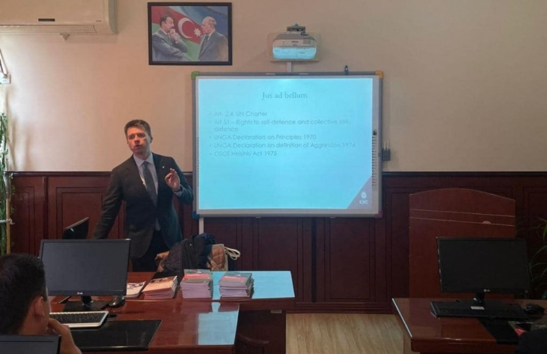 Komitənin Şərqi Avropa üzrə regional əlaqələndiricisi, beynəlxalq humanitar hüquq sahəsində tanınmış ekspert Andrey Kozik tələbələrə “Beynəlxalq humanitar hüququn əsasları” mövzusunda mühazirə deyib. Mühazirədə müasir dövrdə baş verən silahlı münaqişələr zamanı beynəlxalq humanitar hüququn tətbiqi qaydaları, bu zaman yaranan problemlər, innovativ texnologiyalardan istifadə barədə məlumat verilib.