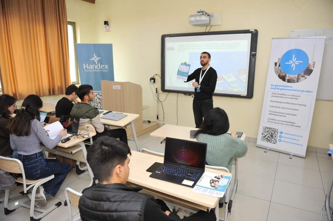 tehsilmedia.info xəbər verir ki, “Gələcəyin peşəsini öyrən” layihəsi çərçivəsində keçirilən ilk təlimdə “Handex” MMC-nin rəhbəri Rəşad Qurbanov tələbələrə proqram təminatı, data analitikası, süni intellekt kimi gələcəyin ixtisasları barədə ətraflı məlumat verib.