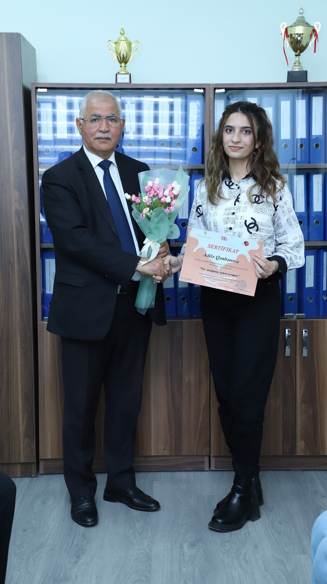 “Azərbaycan dili və ədəbiyyatı müəllimliyi” ixtisasının III tədris ili tələbələri Adilə Qənbərova I mərhələdə, İstək Maliyeva isə II mərhələdə müvafiq yerlər üzrə “Sertifikat” və hədiyyələrlə təltif ediliblər.