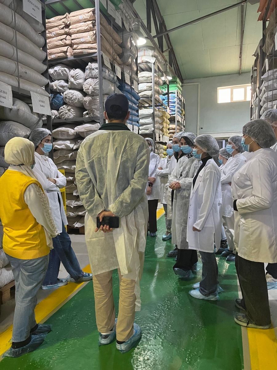 Universitetdən bildirilib ki, "tehsil.media" a burada tələbələr məhsulların yığımı, xammal və yarımfabrikatların saxlanma anbarları, ilkin emal prosesi, məhsulun doldurulması, qablaşdırılması, paketlənməsi və hazır məhsulun saxlanma anbarları ilə tanış olub, avadanlıqların istehsal gücü və iş prinsipləri haqqında məlumat alıblar, eyni zamanda müəssisənin laboratoriyasında bir çox analizlər aparıblar.