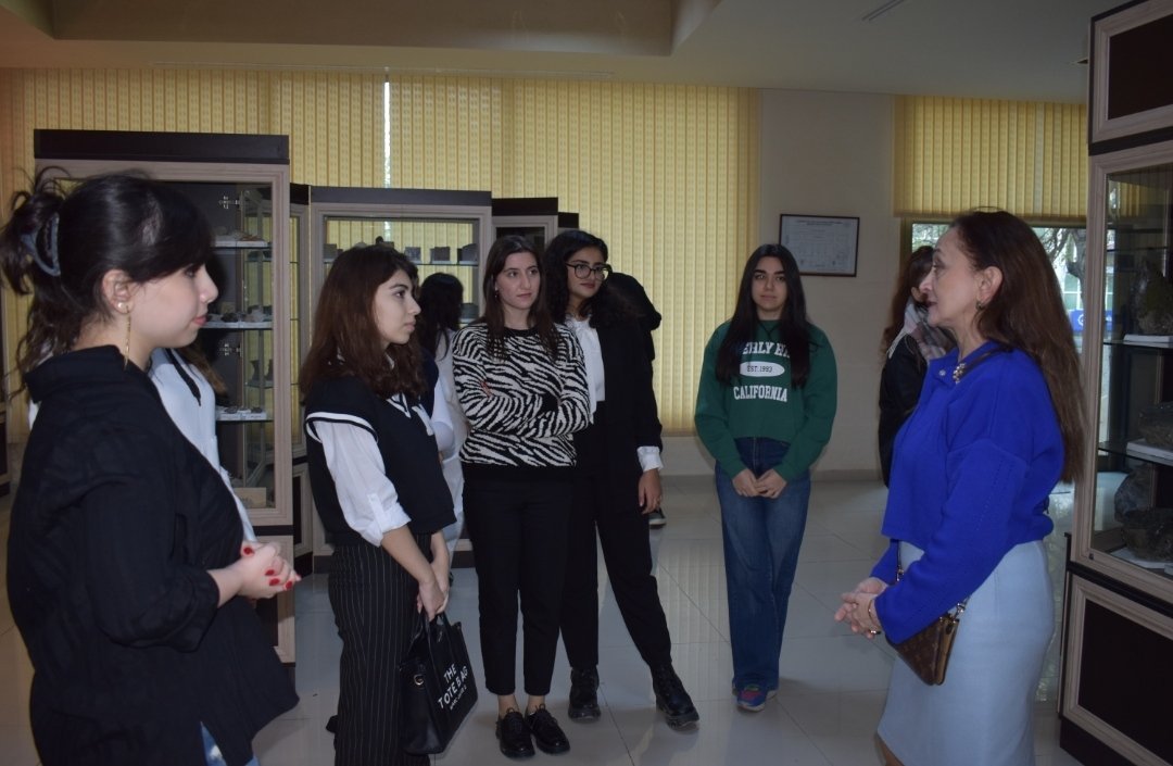 Bakı Dövlət Universitetinin (BDU) Ekologiya və torpaqşünaslıq fakültəsinin III kurs tələbələrinə Ekologiya və Təbii Sərvətlər Nazirliyinin Azərbaycan Geologiya Muzeyində "Ekoloji kartoqrafiya və coğrafi informasiya sistemləri" fənni üzrə interaktiv dərs keçilib.