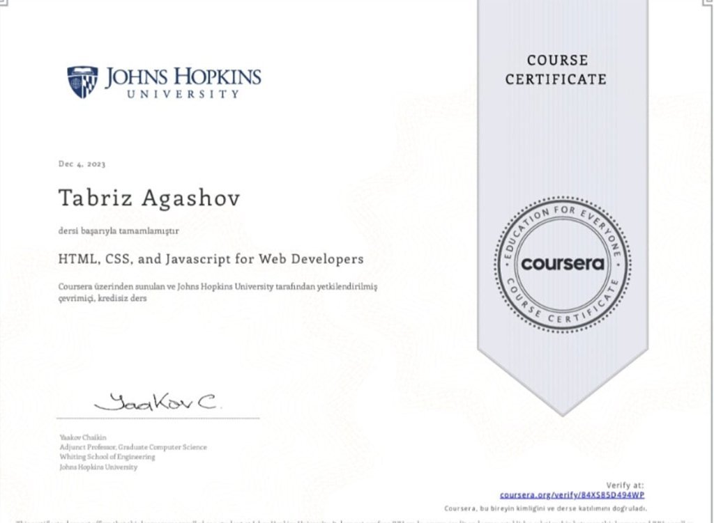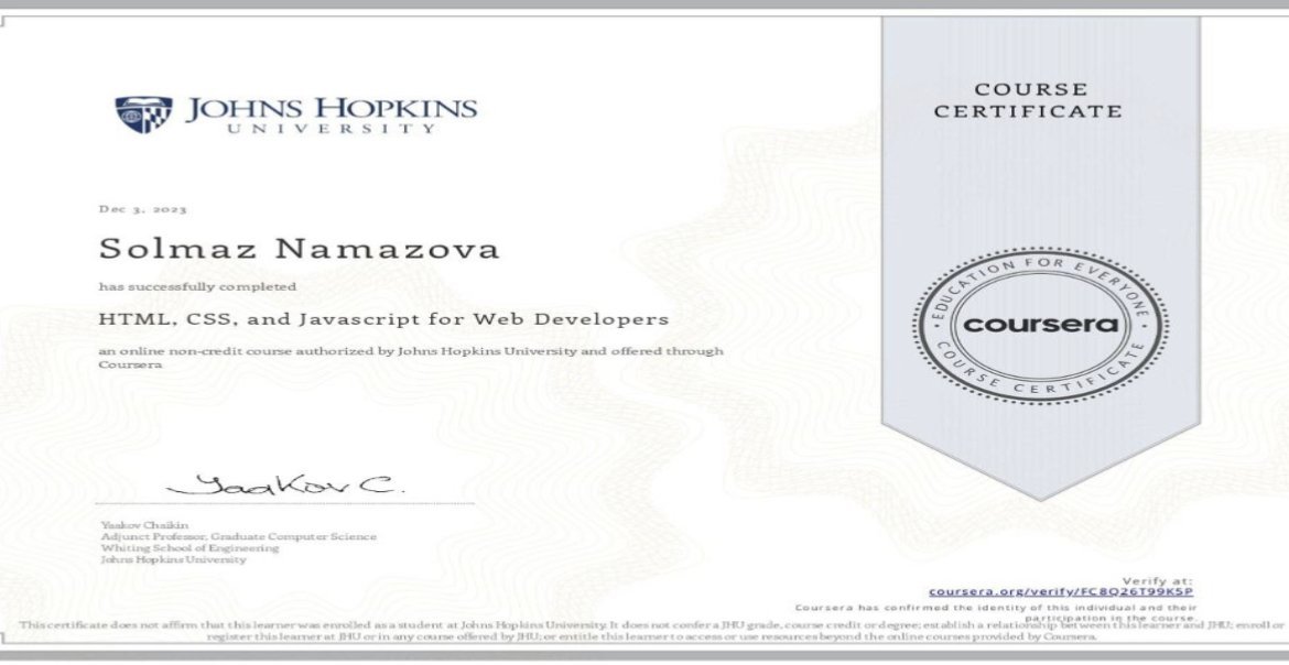 AMEA-nın akademik Z.M.Bünyadov adına Şərqşünaslıq İnstitutunun əməkdaşları Solmaz Namazova və Təbriz Ağaşov İqtisadiyyat Nazirliyinin dəstəyi ilə AMEA-nın Rəyasət Heyətinin təşkil etdiyi müasir rəqəmsal dünyada mühüm rolu olan proqramlaşdırma dilləri - "Introduction to HTML5", "HTML, CSS, and javascript for Web Developers", "AI for Everyone" kurslarını müvəffəqiyyətlə başa vurublar.